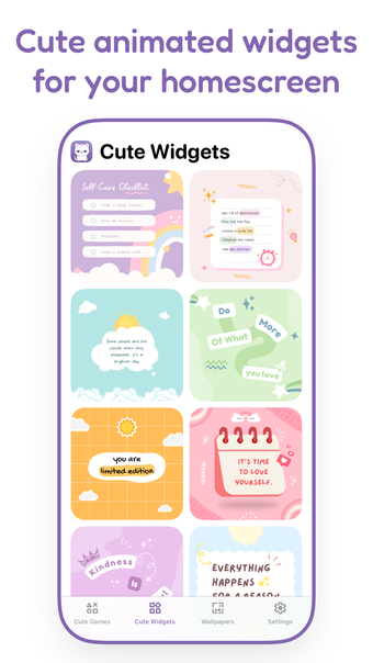 Selain fitur dekoratif, aplikasi ini juga menyertakan beberapa permainan menyenangkan seperti teka-teki geser, permainan mencocokkan yang imut, dan tic-tac-toe, yang dapat dimainkan langsung dari layar utama. Dengan beragam pilihan untuk menyesuaikan dan mempersonalisasi layar utama, CuteKit menjadi pilihan ideal bagi mereka yang ingin menambahkan sentuhan estetika dan hiburan di perangkat mereka.